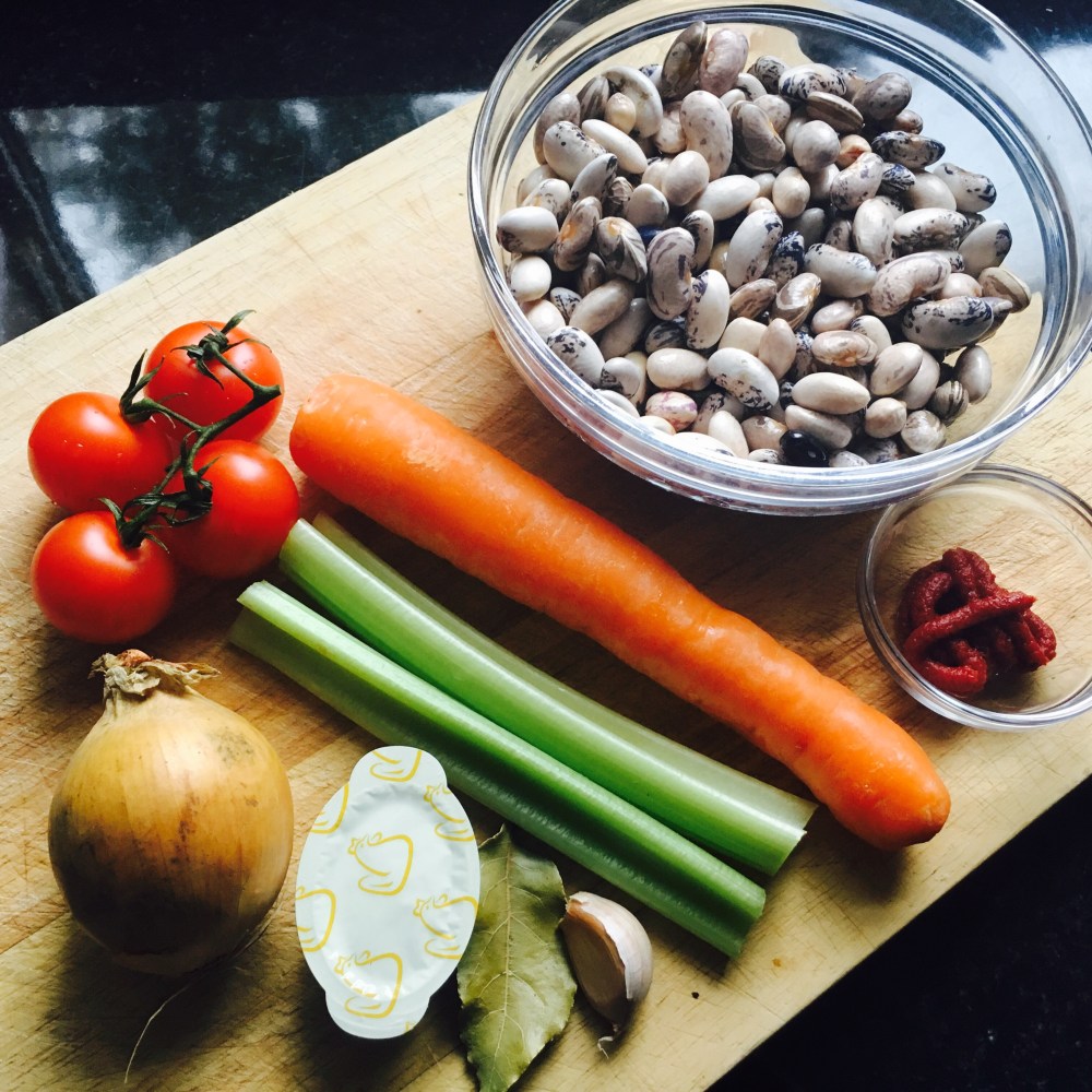 - 1 cup of dried beans (soaked overnight) or a can of beans, use cannellini or barlotti