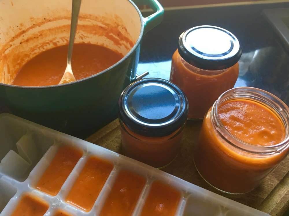 You can bottle these in sterilised jam jars to use in the future. I tend to keep mine in the fridge and use within a few weeks. I also put some sauce into ice cube trays; once frozen I keep them in a freezer bag to use for my daughter if I need a quick meal for her.