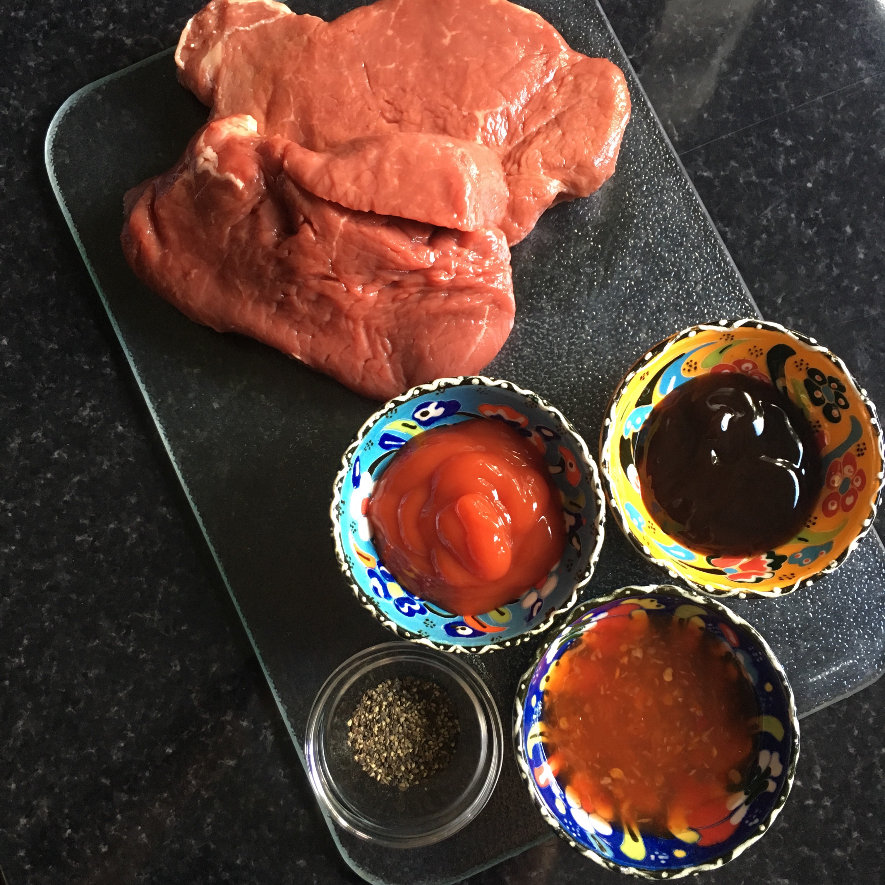 - 2 pieces of steak, I use rump