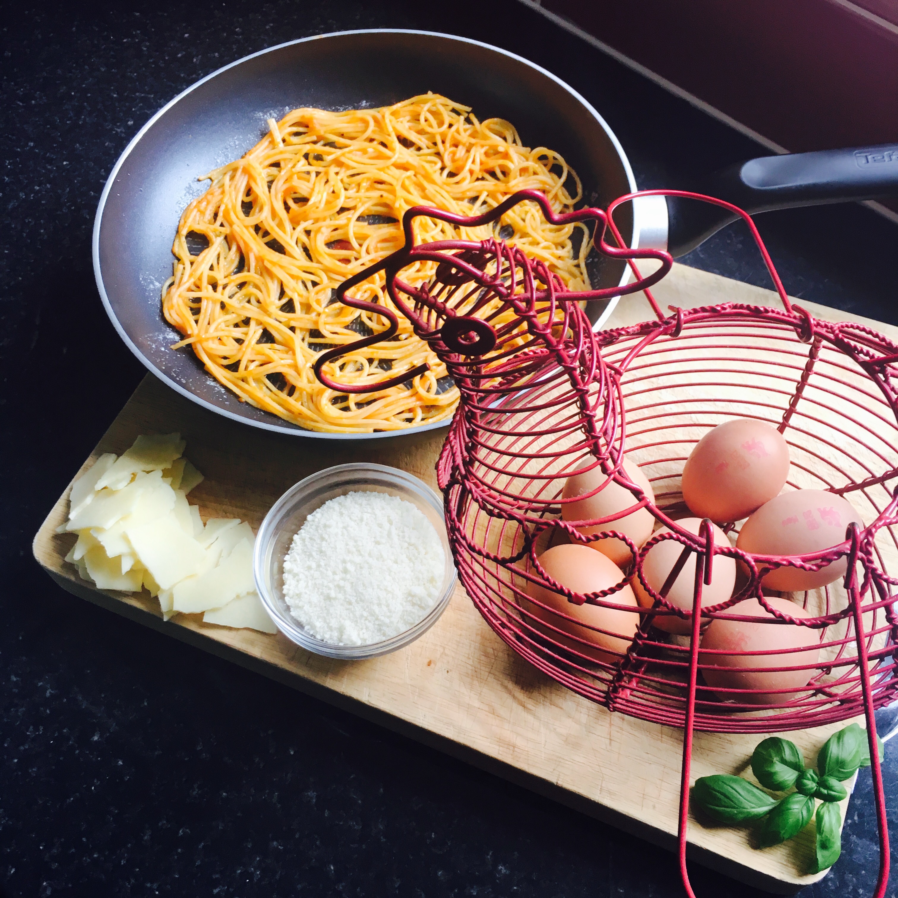 - Left over pasta, any type really, I’ve used spaghetti but you can even use penne or fusilli