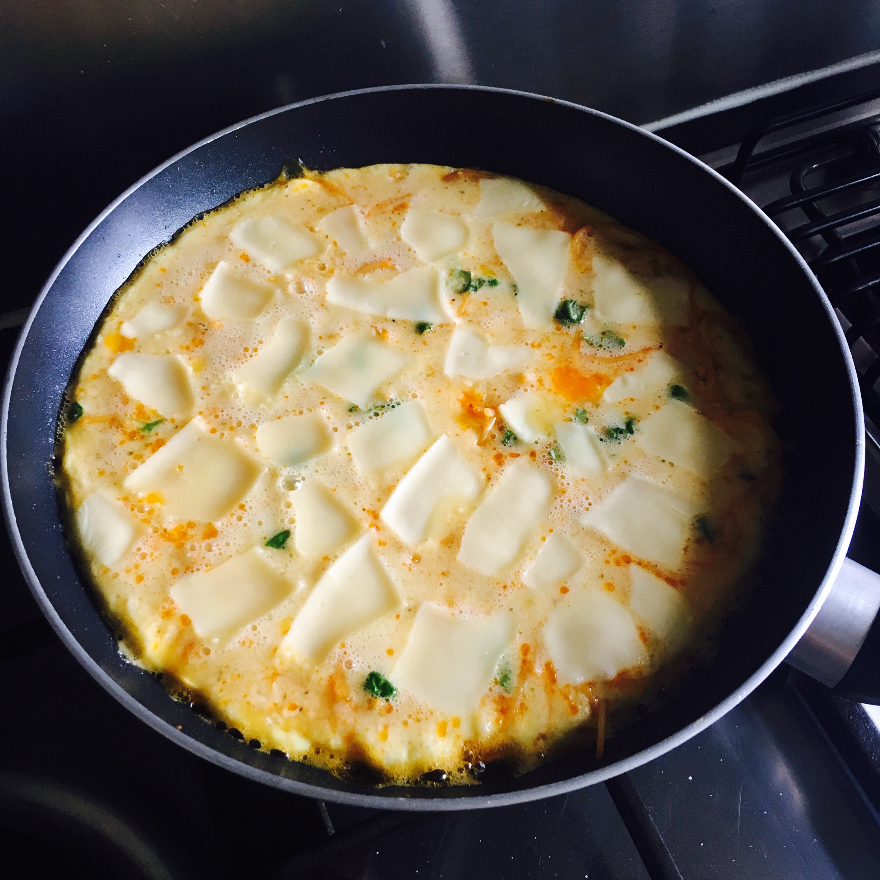 - I tore my sliced cheese and placed it on the top while the omelette was cooking
