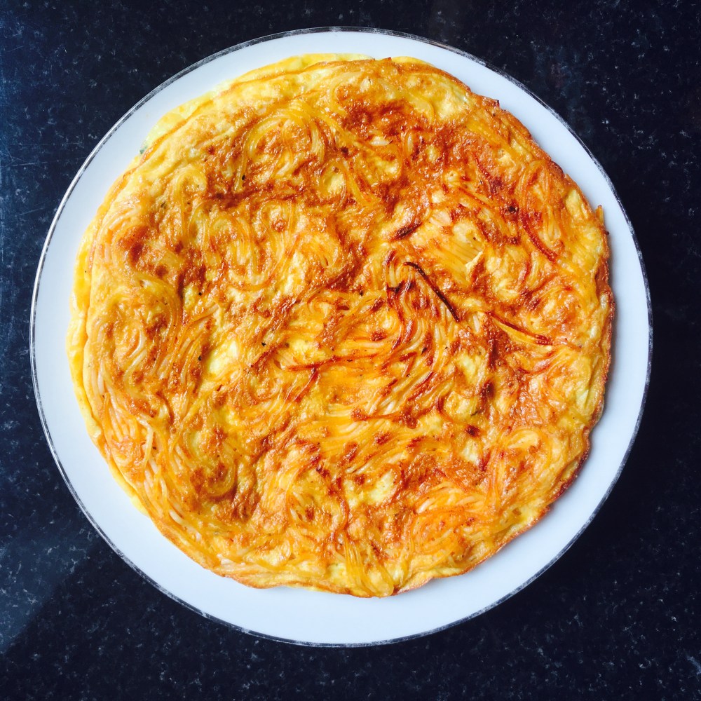 - If possible flip the frittata over to serve so that you can see the crispy pasta