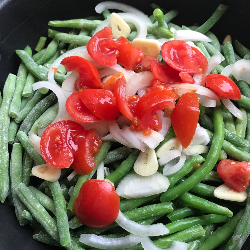 - Once the beans are tender and the tomato has broken down as below they are ready