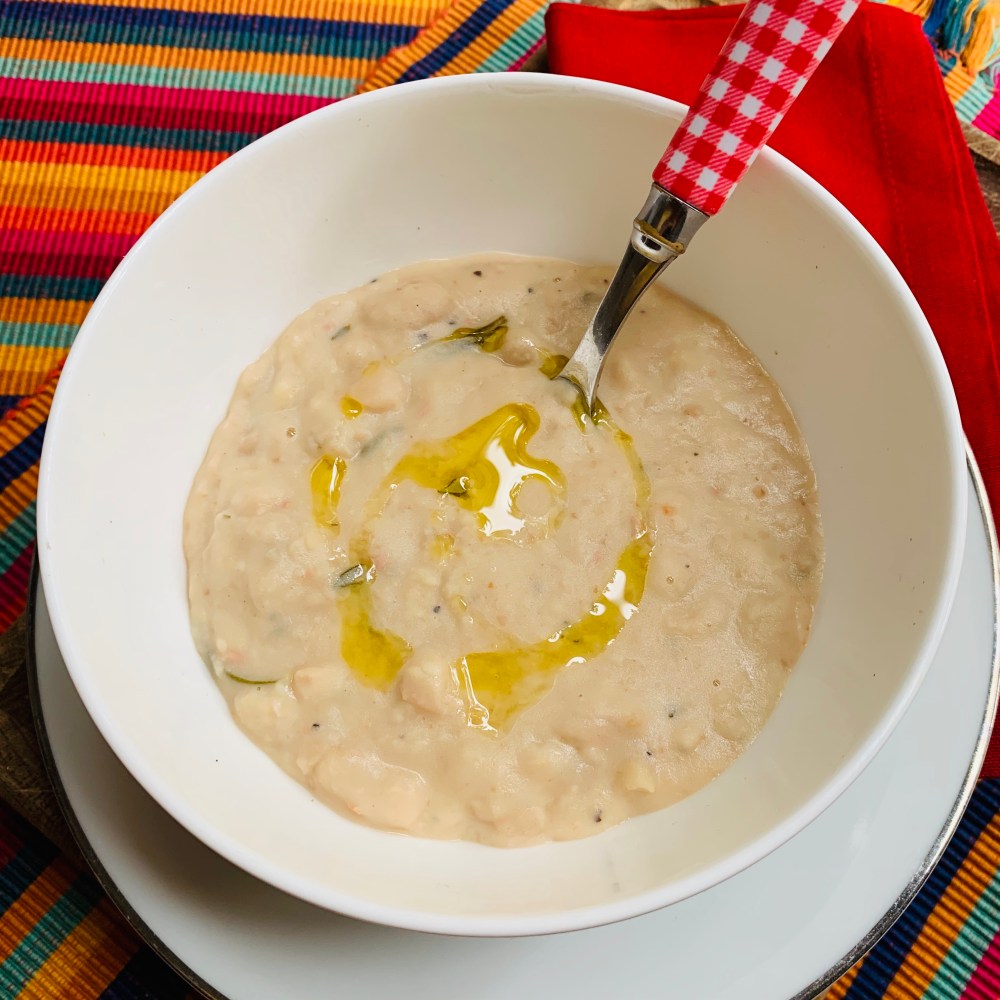 This version uses whole and puréed beans although if you prefer you can purée all of the beans to make a smoother soup or you can purée 2 of the 3 cans of beans.